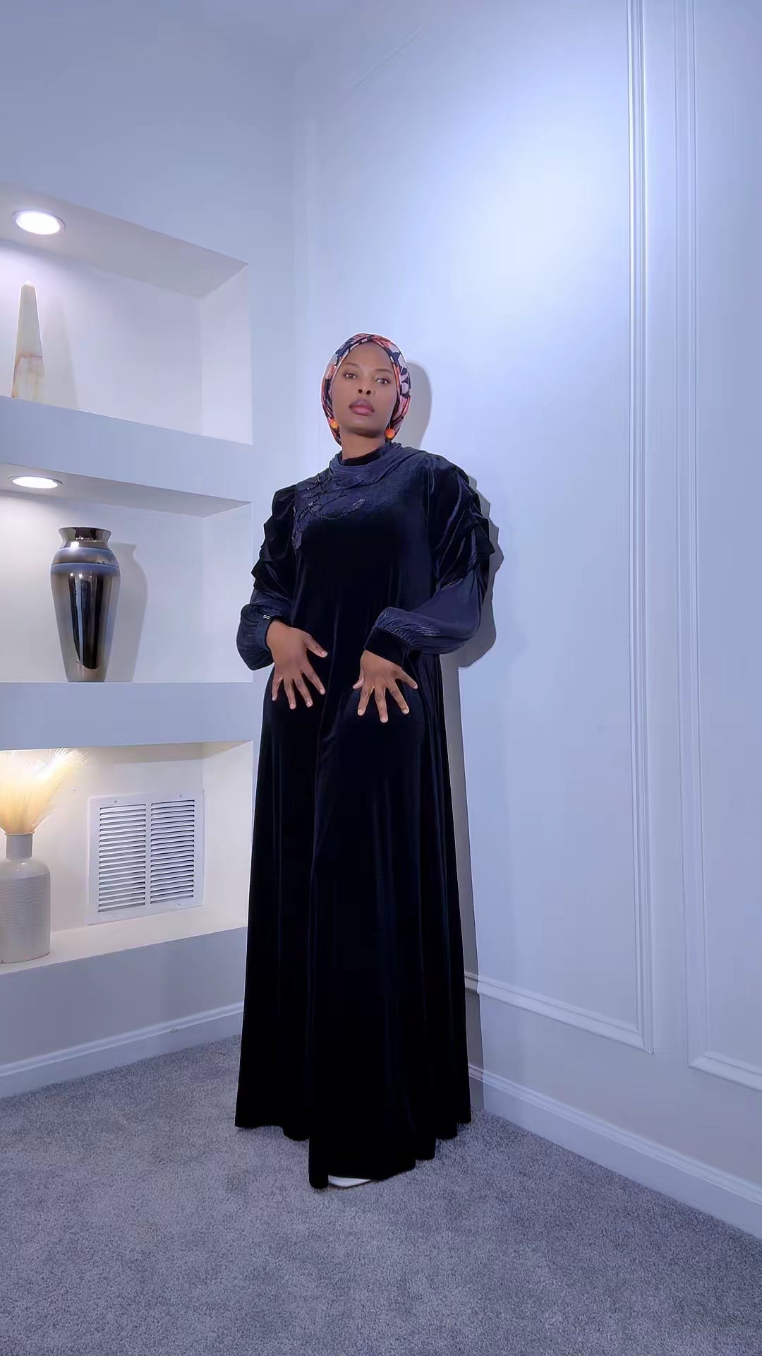 Step into effortless sophistication with this stunning black velvet abaya dress a perfect blend of luxury and modesty.